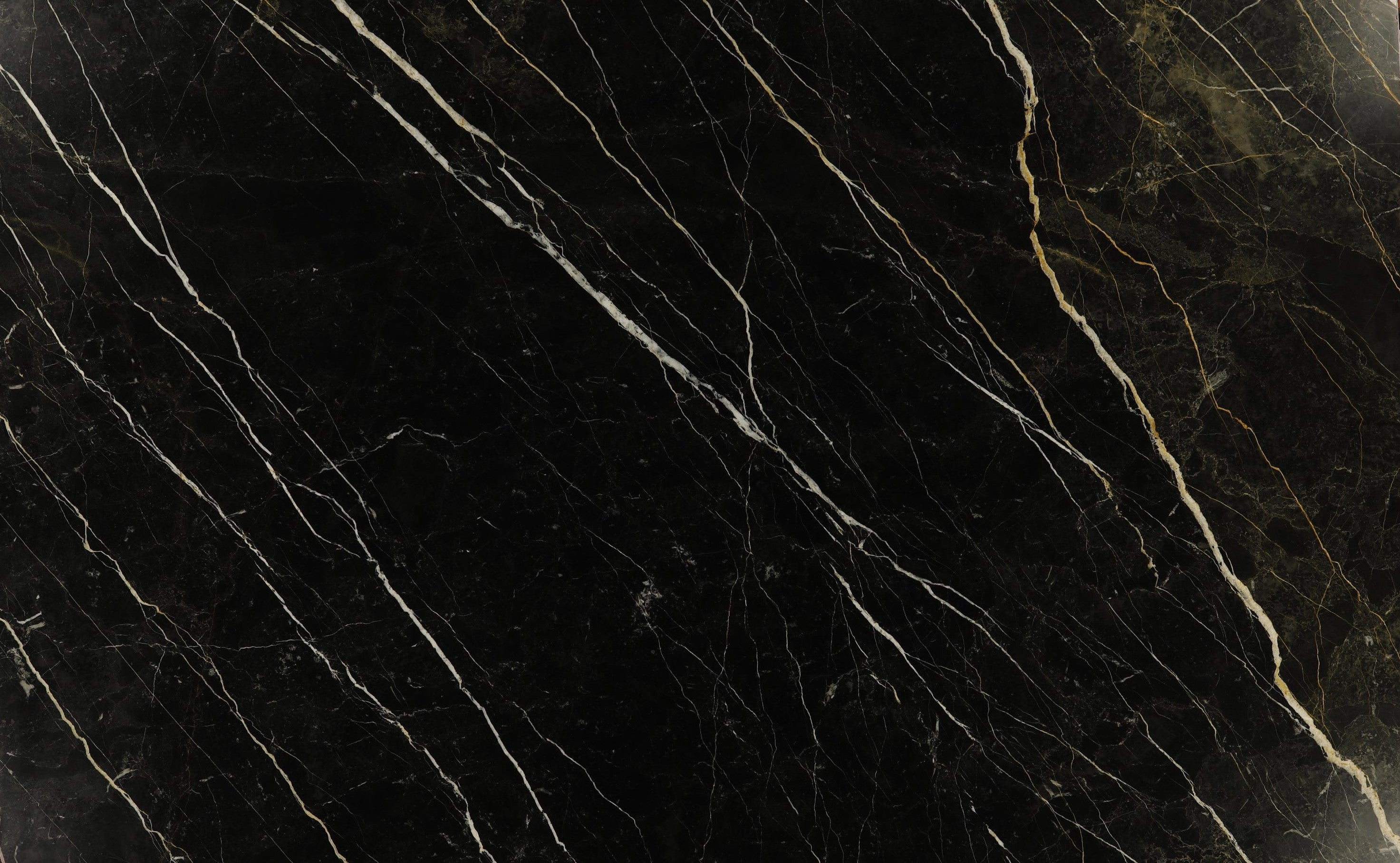 122 x 77 This striking marble features an intense jet-black foundation dramatically crossed by elongated veins of crisp white and warm gold, creating a bold yet...