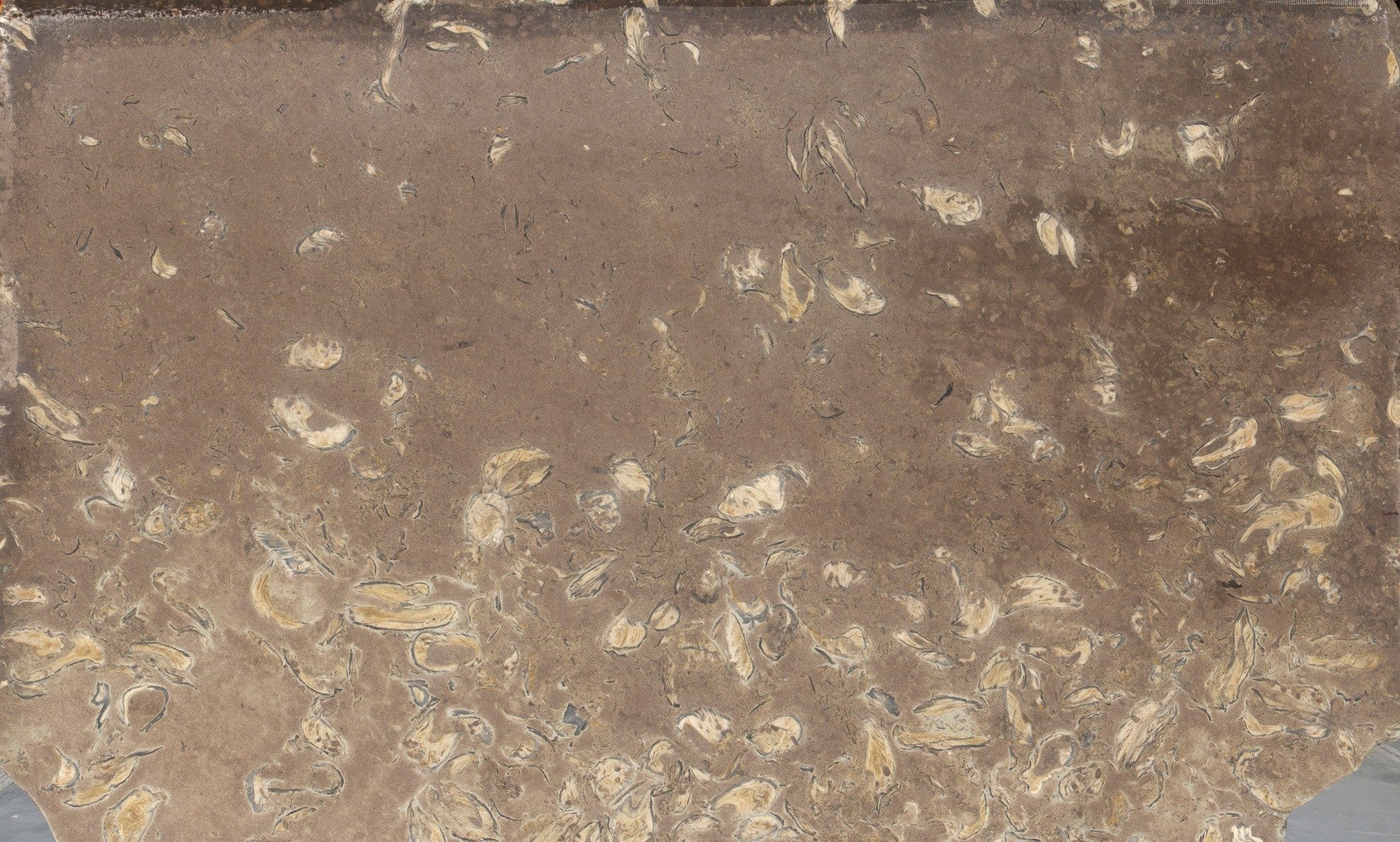 118 x 74 This distinctive natural stone features a rich mocha and warm taupe foundation, beautifully scattered with fossilized shell impressions in soft ivory and sandy...